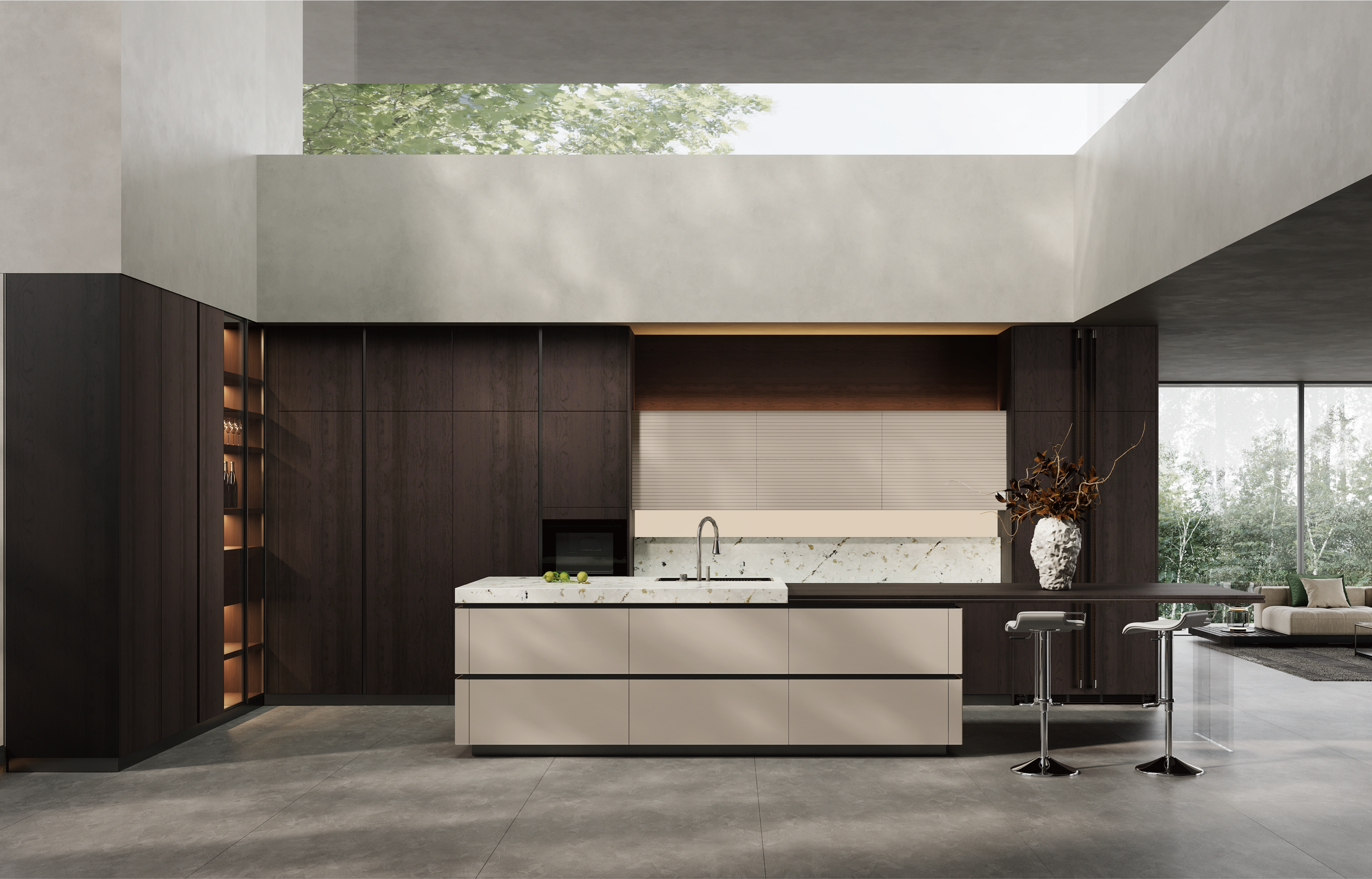 通过a8国际厨柜量体裁柜,定制出适合主厨下厨的烹饪区和洗涤区的舒适高度。